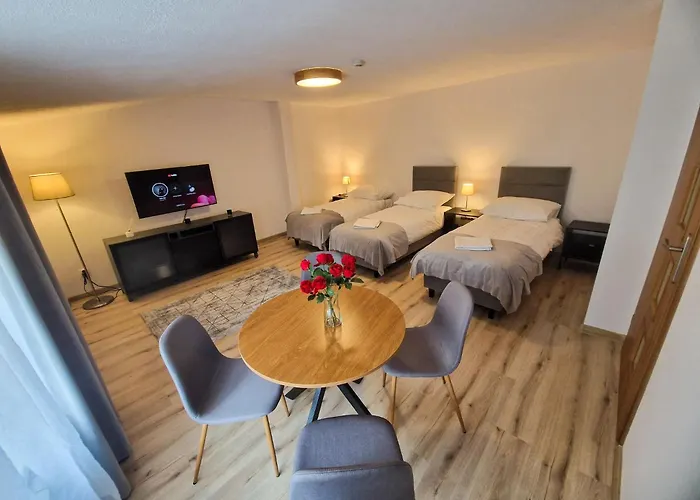 - ❓Waar wordt Livermo Graniczna appartement geplaatst?Livermo Graniczna appartement is gelegen in de wijk Grunwald in Poznań.